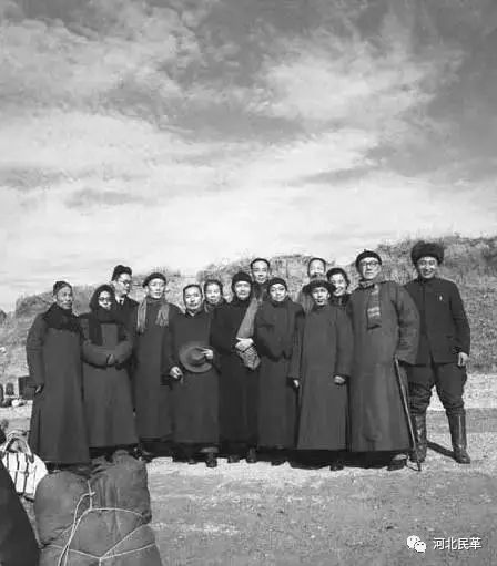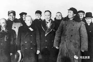 1949年3月25日,毛澤東主席等率中共中央機(jī)關(guān)和人民解放軍總部進(jìn)入北平。這是同前來迎接的民主黨派負(fù)責(zé)人和其他民主人士在西苑機(jī)場合影。左起:沈鈞儒、朱德、董必武、李濟(jì)深、陳其瑗、郭沫若、黃炎培、毛澤東、林伯渠、馬敘倫。