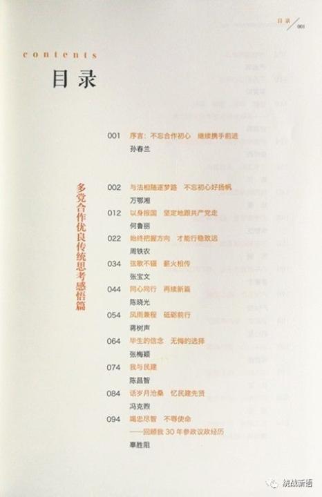 《與法相隨逐夢路?不忘初心好揚(yáng)帆》《弦歌不輟?薪火相傳》《我與民建》《與祖國同命運(yùn)》《寸草之心?永報春暉》《不忘初心渡重洋?百煉成鋼報中華》《承啟仁心崇德尚道》《一灣海峽意綿長?一念家國志同心》,這是書中各民主黨派中央主席所撰寫文章的題目,光看題目就知道肯定有故事。