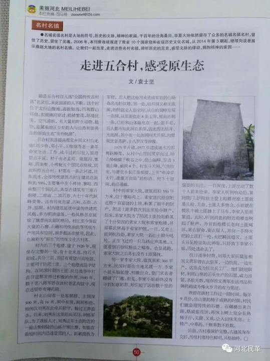 編者按:2017年第十一期河北省政協(xié)《鄉(xiāng)音》雜志刊登了河北邯鄲民革黨員袁士堅撰寫的《走進五合村,感受原生態(tài)》一文,現(xiàn)予轉發(fā)。