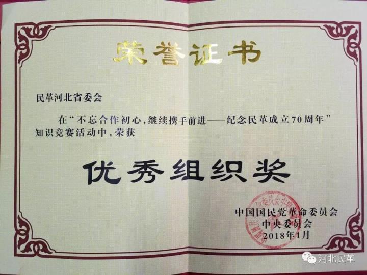 【紀(jì)念民革成立70周年知識(shí)競(jìng)賽】河北代表隊(duì)榮獲優(yōu)秀組織獎(jiǎng)