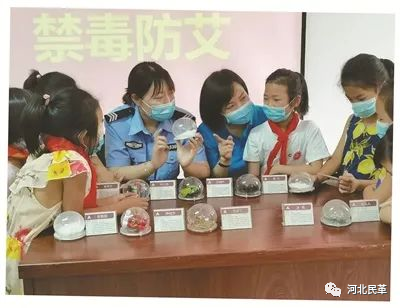 民革邯山二支部黨員曹勝男(右三)等人參加禁毒防艾進社區(qū)宣傳活動。