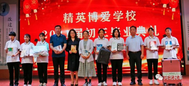 又是一年畢業(yè)季。6月23日,精英博愛學校舉行2021屆初中畢業(yè)典禮。民革河北省委會專職副主委梁立敏出席并致辭。民革石家莊市委會駐會副主委苗金星,河北省善行使者公益協(xié)會會長李潔、秘書長冠炳耀,精英集團總裁助理尚建民,精英博愛學校校長王衛(wèi)肖和全體師生參加畢業(yè)典禮。典禮由精英博愛學校行政副校長朱鴨根主持。