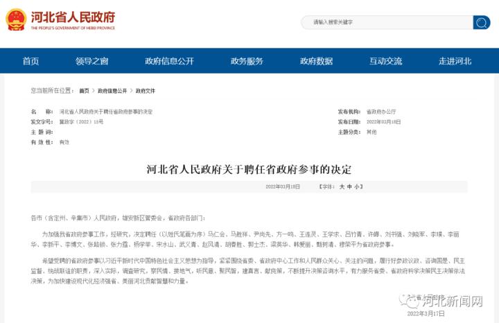 日前,省政府辦公廳發(fā)布《河北省人民政府關(guān)于聘任省政府參事的決定》,其中,民革黨員馬勝祥、胡春勝、甄樹清被聘為省政府參事。在此對(duì)三名民革黨員表示熱烈祝賀!現(xiàn)將《決定》全文轉(zhuǎn)發(fā)如下: