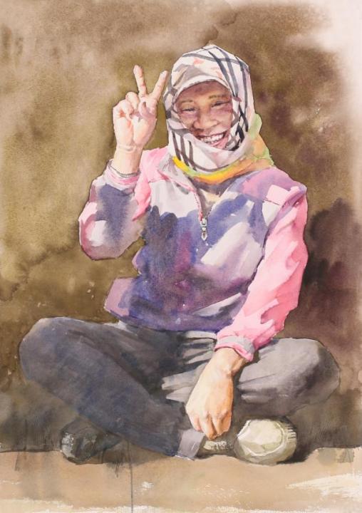 王強?水彩?《豐收的笑臉》