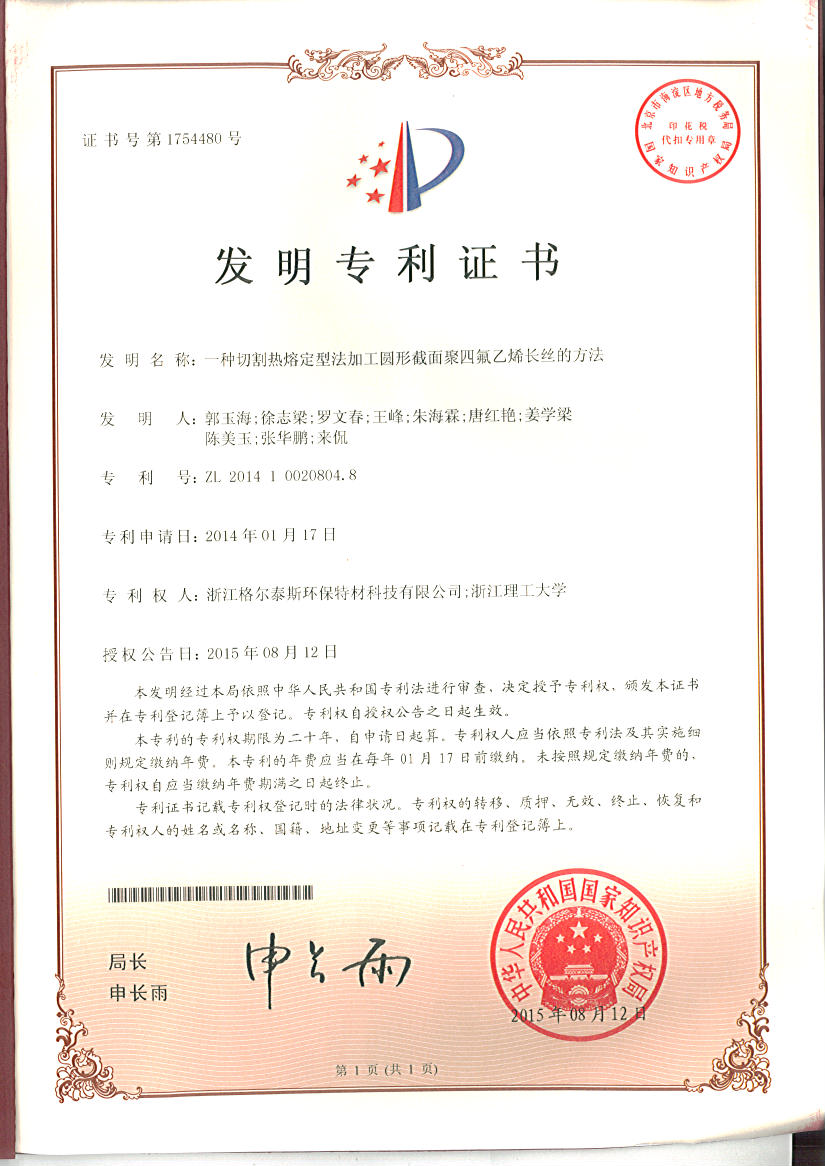 版權所有 浙江格爾泰斯環保特材科技股份有限公司 地 址:浙江省湖州市吳興區紅豐西路底(漾西路501號) 電話:0572-2559111