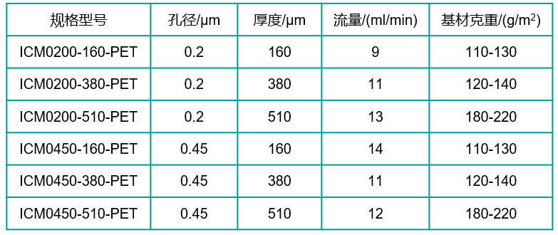 流量測試條件: φ40mm膜片,△P=0.1MPa *客戶可根據需求選擇基材的種類