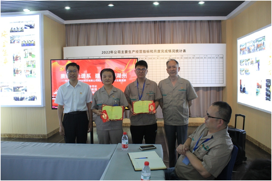 7月5日,浙江格爾泰斯環(huán)保特材科技股份有限公司舉行以“干在實(shí)處加把勁,提質(zhì)增效爭上游”為主題的慶祝建黨101周年主題黨日活動(dòng)。本次活動(dòng)特邀市“兩新”組織黨務(wù)工作者協(xié)會(huì)秘書長,市委黨校特聘教授,公司戰(zhàn)略顧問、紅色CEO汪俊國上黨課,并舉行優(yōu)秀共產(chǎn)黨員表彰儀式。公司董事長楊建林、總經(jīng)理姜學(xué)梁、副總經(jīng)理?xiàng)铊F軍、研究院副院長崔貞超,全體黨員、入黨積極分子、培養(yǎng)對象,各部門經(jīng)理、各車間主任,部門工作人員和青年骨干以及禾海公司員工參加活動(dòng)。公司黨支部書記於榮春主持本次活動(dòng)。  會(huì)上,於書記宣讀2022年度公司優(yōu)秀共產(chǎn)黨員表彰決定,市“兩新”組織黨務(wù)工作者協(xié)會(huì)秘書長,市委黨校特聘教授,公司戰(zhàn)略顧問、紅色CEO汪俊國向李留磊、朱俊華兩位同志頒發(fā)證書和獎(jiǎng)品。